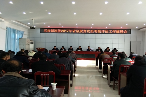 12月21日,五权镇组织召开迎接2017年省级脱贫攻坚考核评估工作推进会,村三职干部、第一书记、全体镇干部及机关单位负责人参加了会议。会议再次传达了县迎接2017年省级脱贫攻坚考核评估工作动员培训会会议精神,组织学习了脱贫攻坚考核评估相关文件,详细安排部署了五权镇迎接2017年省级脱贫攻坚考核评估等相关工作。