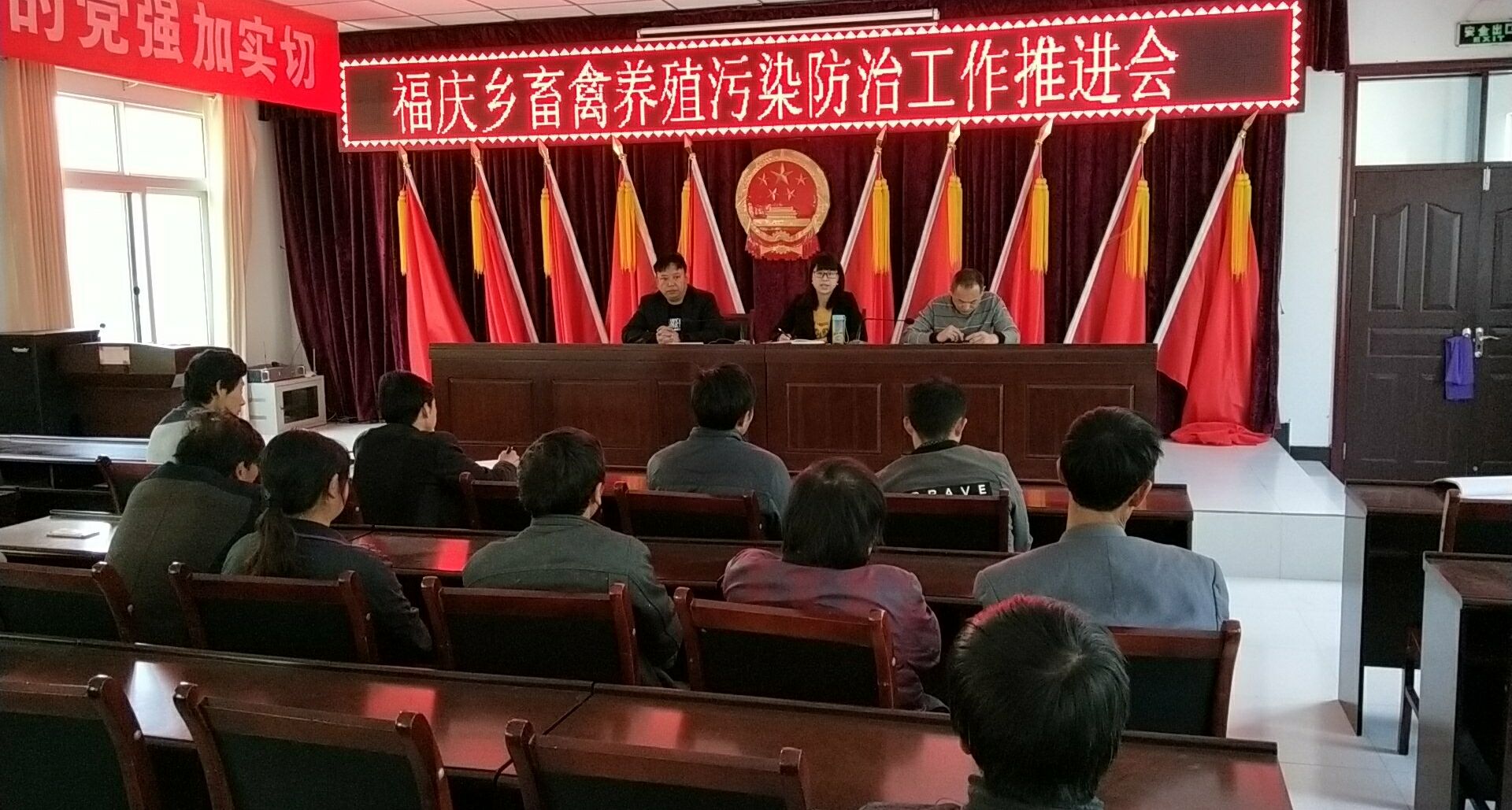 4月9日,福庆乡组织召开畜禽养殖污染防治工作推进会,乡畜牧兽防站及辖区内畜禽养殖场业主参加会议。