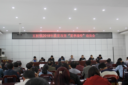 4月24日,五权镇组织召开2018年脱贫攻坚“夏季战役”动员会。机关单位负责人、全体镇干部、村三职干部、驻村第一书记参加会议。