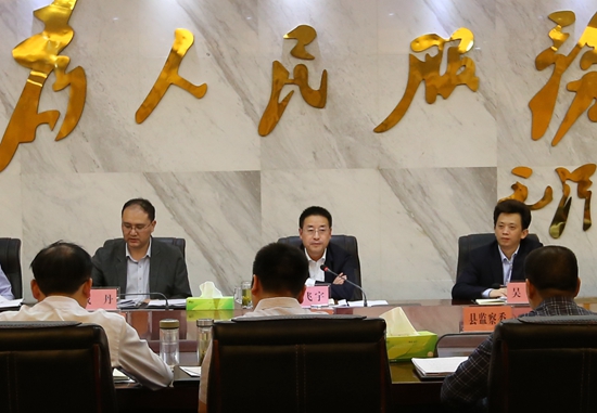 会前学习了《中华人民共和国监察法》《四川省煤矿安全生产重点监控县督导办法》,会议传达了《四川省市县党政主要领导干部履行经济责任重点风险提示清单》《四川省市县党政主要领导干部履行自然资源资产管理和生态环境保护责任重点风险提示清单》及全市新型城镇化工作推进会议精神,审议并原则通过了《道路交通安全集中治理工作方案》《广元市三大战役年度实施方案旺苍县目标任务分解表(建议)》《旺苍县环境保护“十三五”规划》《旺苍县粮食生产功能区和重要农产品生产保护区划定工作方案》,研究了第四次全国经济普查工作、乡镇卫生院达标建设、政府机关食堂维修改造工程增量变更、启动西府景园(邓家河片区)棚户区改造项目等相关事宜。