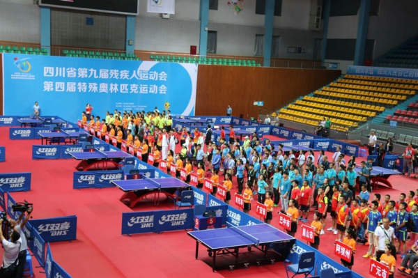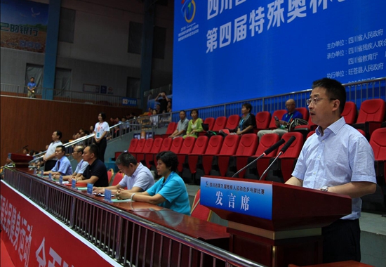 7月5日上午,四川省第九届残疾人运动会乒乓球比赛开赛仪式在我县体育馆举行。省残联宣文处处长冯金伟出席开赛仪式并宣布开赛,县委副书记、县长余飞宇致欢迎词。