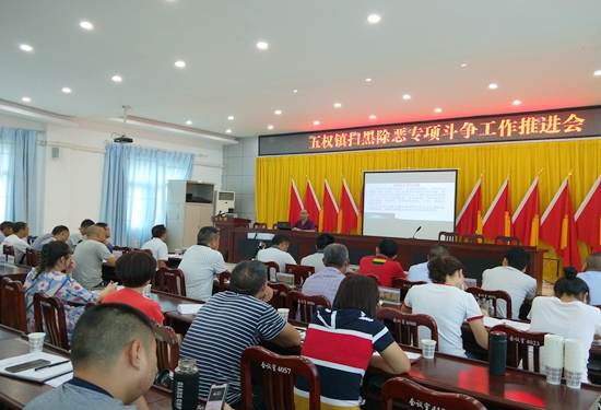 近日,五权镇组织召开扫黑除恶专项斗争工作推进会,全体镇干部、机关单位负责人、各村(社区)书记和主任参加会议。县委政法委相关负责人受邀参加此次会议。