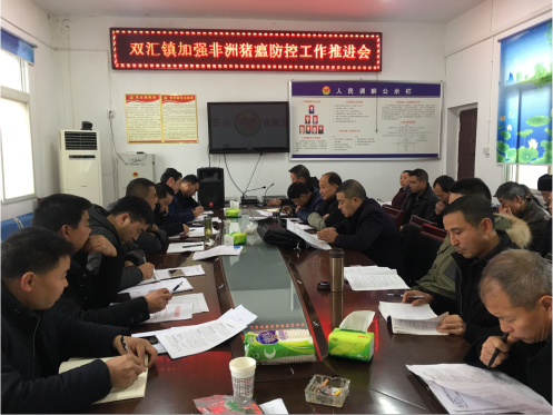 12月18日上午,双汇镇在镇三楼会议室召开非洲猪瘟防控工作推进会。各村(居)主任、兽防站全体职工及村级防疫员参加会议。