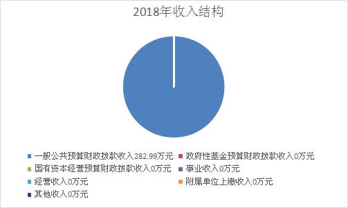 2018年本年收入合计282.99万元,其中:一般公共预算财政拨款收入282.99万元,占100%;政府性基金预算财政拨款收入0万元,占0%;国有资本经营预算财政拨款收入0万元,占0%;事业收入0万元,占0%;经营收入0万元,占0%;附属单位上缴收入0万元,占0%;其他收入0万元,占0%。