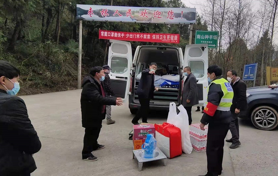2月13日,枣林乡解放村村民李朝勇向在卡口一线进行疫情防控值守的工作人员捐赠约8000元慰问物资:白煤300斤、方便面10箱、农夫山泉10箱、简易板床4张、棉被5床、床单5床、被套5床、四角帐篷5顶、花雨布34米、烤火盆5个、温水瓶5个等。截至目前,枣林乡各村已收到十多名热心村民的爱心捐赠物资。(枣林乡 张琛濡)