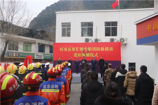 县领导马超群、杜培军,部分乡镇代表、群众代表、双汇镇专职消防救援站全体指战员参加仪式。(图/文:旺苍县融媒体中心 张坤)