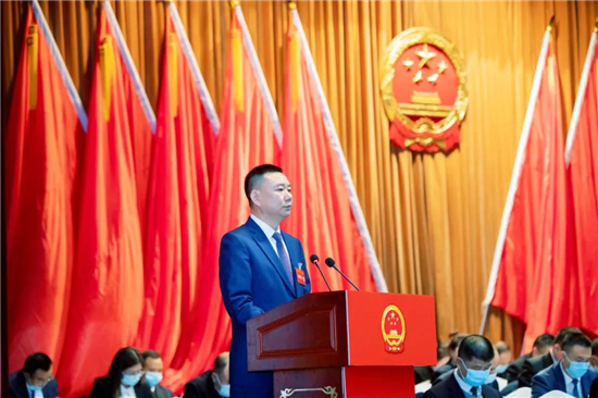 杜非代表县人民政府作工作报告。报告由2021年工作回顾和2022年主要目标任务和重点工作两部分组成。