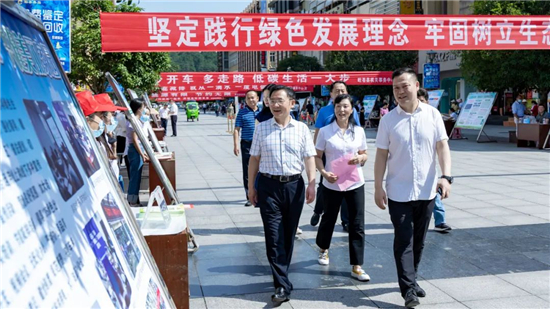 活动现场摆放着各类节能产品,各单位在咨询台前热情为过往市民发放宣传单,讲解节能小知识。唐文辉一行边走边看,听取节能产品、相关知识介绍,不时与工作人员亲切交谈,了解全县节能改造、垃圾分类等工作开展情况,并在宣传展板上签名留念,倡导群众积极落实“双碳”行动,共建美丽家园。