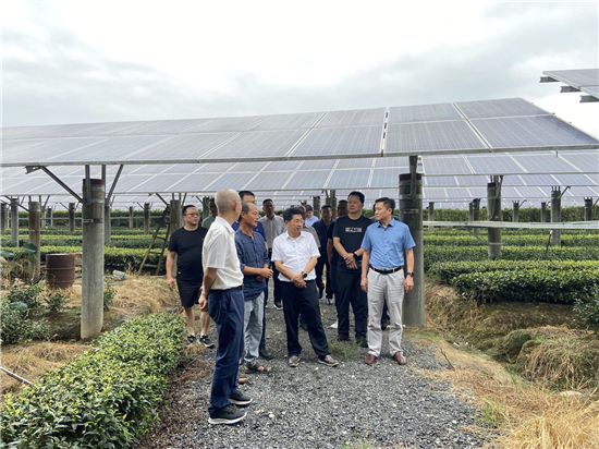 赵俊科一行深入浙江大学茶学实验基地、中国农业科学院茶叶研究所、浙能环亚松阳光伏发电厂等地,就光伏发电与茶产业发展是否能互利共存、“茶光互补”项目在旺苍落地的可能性等问题进行了实地考察,并深入交流学习。