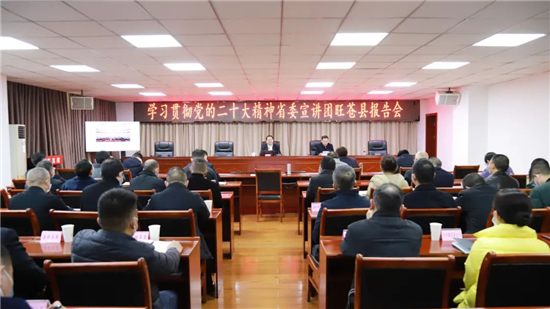 根据省委统一安排部署,12月1日,学习贯彻党的二十大精神省委宣讲团报告会在旺苍县举行。省委宣讲团第三分团成员、西南财经大学西财智库主任、研究员汤继强作宣讲报告。县委书记唐文辉主持报告会。