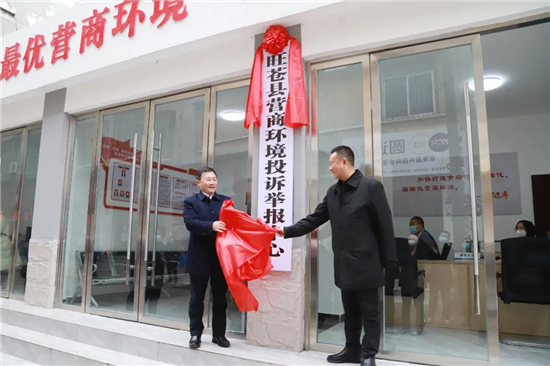 1月12日,旺苍县举行营商环境投诉举报中心揭牌仪式。县委书记唐文辉,县委副书记、县长杜非共同为投诉举报中心揭牌。