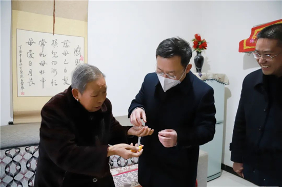 1月16日,农历腊月廿五,红城大地张灯结彩,处处洋溢着节日的喜庆气氛。县委书记唐文辉带队深入东河镇多个社区,看望慰问离休干部、老党员和离休干部遗孀,代表县委、县政府向他们送去党和政府的关怀与温暖,并通过他们向全县老干部和老党员致以节日的问候。