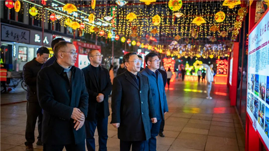 火树银花不夜天,张灯结彩迎新年。1月17日晚,县委书记唐文辉带队深入电影院步行街、红桥、中国红军城等地,调研春节氛围营造工作。
