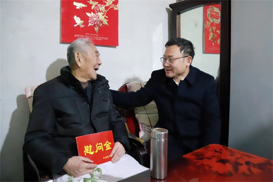 在老干部张跃堂家中,唐文辉与张老促膝交谈,关切询问他的身体和生活情况,感谢他为旺苍建设发展作出的贡献,祝他健康长寿、阖家幸福。唐文辉说,老干部是党和人民的宝贵财富,相关部门要带着感情、带着责任,为他们提供优质的服务与贴心的保障,让他们老有所乐,过上欢乐祥和、充实幸福的晚年生活。