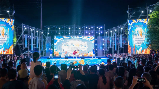 开幕式上,餐饮协会用动感的舞姿和丰富的图文,将木门卤鸡、茶汁熏腊排等旺苍特色美食和正中名小吃、四合院老火锅等特色餐饮店作了精彩推介;参展啤酒商代表细数产品特点,让在座宾朋更深入地了解和感受了啤酒的魅力;《鼓动旺苍》《龙的传人》等歌曲和舞蹈表演令人应接不暇,为大家带来了非凡的视听享受。与此同时,黄洋西瓜、天星腊肉等产品纷纷亮相红桥,吸引着摩肩接踵的人群停下脚步购买品尝。国家级非物质文化遗产打铁花表演在东河之上绽放,点亮了观众的眼眸。