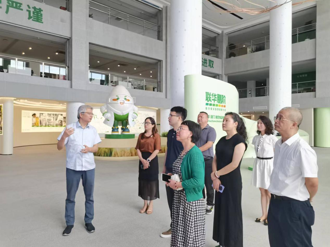 在联华(厦门)航空食品有限公司,胡超一行实地参观了航空标准智能化食品园区,详细了解了预制菜智能烹饪、食味鉴定、it化微生物检测、生产流程、温控追踪等流程和工艺,并就项目合作与企业负责人进行沟通。胡超表示,我县气候优渥,农产品种类多、品质高、产量大,诚挚邀请企业一行来旺考察,共谋合作。