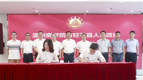 在温州,杜非与温州商学院执行校长赵玻、全球浙商俱乐部副主席黄海滨等嘉宾一道,见证了旺苍县与温州商学院成功举行校地合作签约仪式,未来校地双方将进一步密切交流,在人才培养、商业合作等方面共谱新篇章。