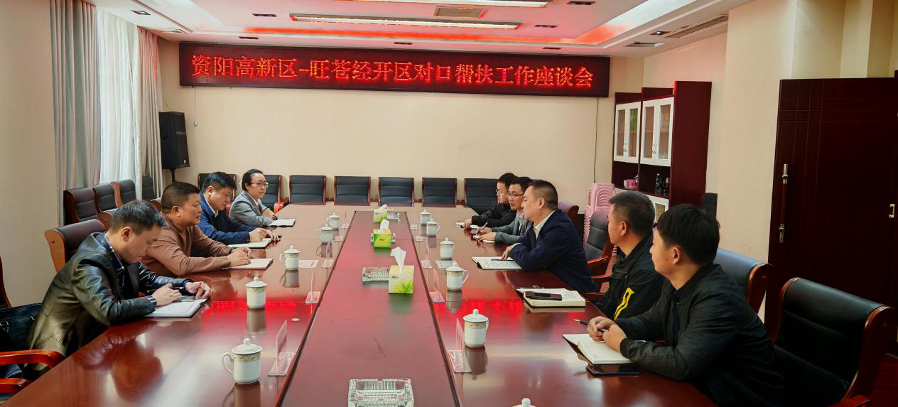 10月25日,资阳高新区赴旺苍经开区开展对口帮扶工作座谈会。高新区党工委委员、机关党委书记宋继桃一行,旺苍经开区党工委书记张记郡,旺苍经开区党工委副书记、管委会主任杜昕东参加会议。