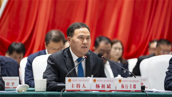 杨祖斌在讲话中代表县委,代表大会主席团,向大会的圆满召开和新当选的同志表示祝贺,向退出领导岗位的同志表示感谢。杨祖斌指出,2024年是实现“十四五”规划目标任务的关键一年,是旺苍改革发展历程上具有重要意义的一年,七大主要经济指标有4项位居全市县区前三,获得市重点产业专班“年度流动红旗”和3次季度“流动红旗”。成绩的取得,根本在于习近平总书记领航掌舵,在于习近平新时代中国特色社会主义思想科学指引,是县四套班子精诚团结、共同奋斗的结果,是全县广大党员干部和人民群众齐心协力、拼搏进取的结果,是各级人大组织和人大代表共同努力、辛勤付出的结果。