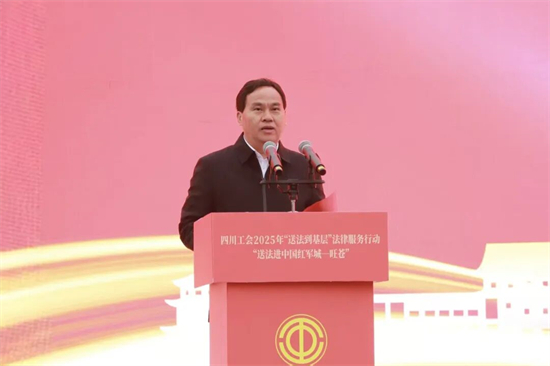 10月23日,四川工会2025年“送法到基层”法律服务行动“送法进中国红军城——旺苍”活动举办。四川省总工会党组成员、副主席,机关党委书记王超,广元市委常委、统战部部长、市总工会主席陈正永出席活动并讲话,旺苍县委书记杨祖斌出席活动并致辞。