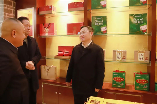 在茶叶销售门店内,唐文辉实地了解了产品包装、茶叶产量、市场销售、品牌推广等情况,听取了企业食品安全管控等工作汇报。他指出,米仓山茶历史文化悠久,生态优势突出,产业发展大有可为。要进一步加强统筹规划,集中优势资源,持续做大做强米仓山茶产业品牌,助力乡村产业振兴。