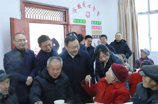 在困难群众赵万宝家中,唐文辉关切询问他的家庭和身体情况,向他送上了生活用品和慰问金,鼓励他坚定信心,保重身体,积极乐观面对生活。随后,唐文辉来到水磨镇板桥村村委会,为村民们送去了御寒物资,与正在食堂就餐的老人们亲切交谈,并前往便民服务中心,实地了解乡镇便民服务工作开展情况。唐文辉强调,要坚持以人民为中心的发展思想,扎实开展“暖冬帮扶行动”,确保群众安全温暖过冬。要以开办村民爱心食堂为切口,探索集中养老服务体系建设,全面提升农村养老服务保障水平。要运用信息化技术手段,及时收集偏远地区农户需求,打通为民服务“最后一公里”。要增强便民服务中心辐射能力,培育专业代办人员,真正实现服务便民化。