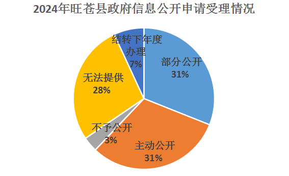 (二)依申请公开情况。2024年,全县通过线上平台、当面申请、信件方式共收到政府信息公开申请29件,较去年增长163.64%。其中:部分公开9件,主动公开9件,不予公开1件,无法提供8件,结转下年度继续办理2件。