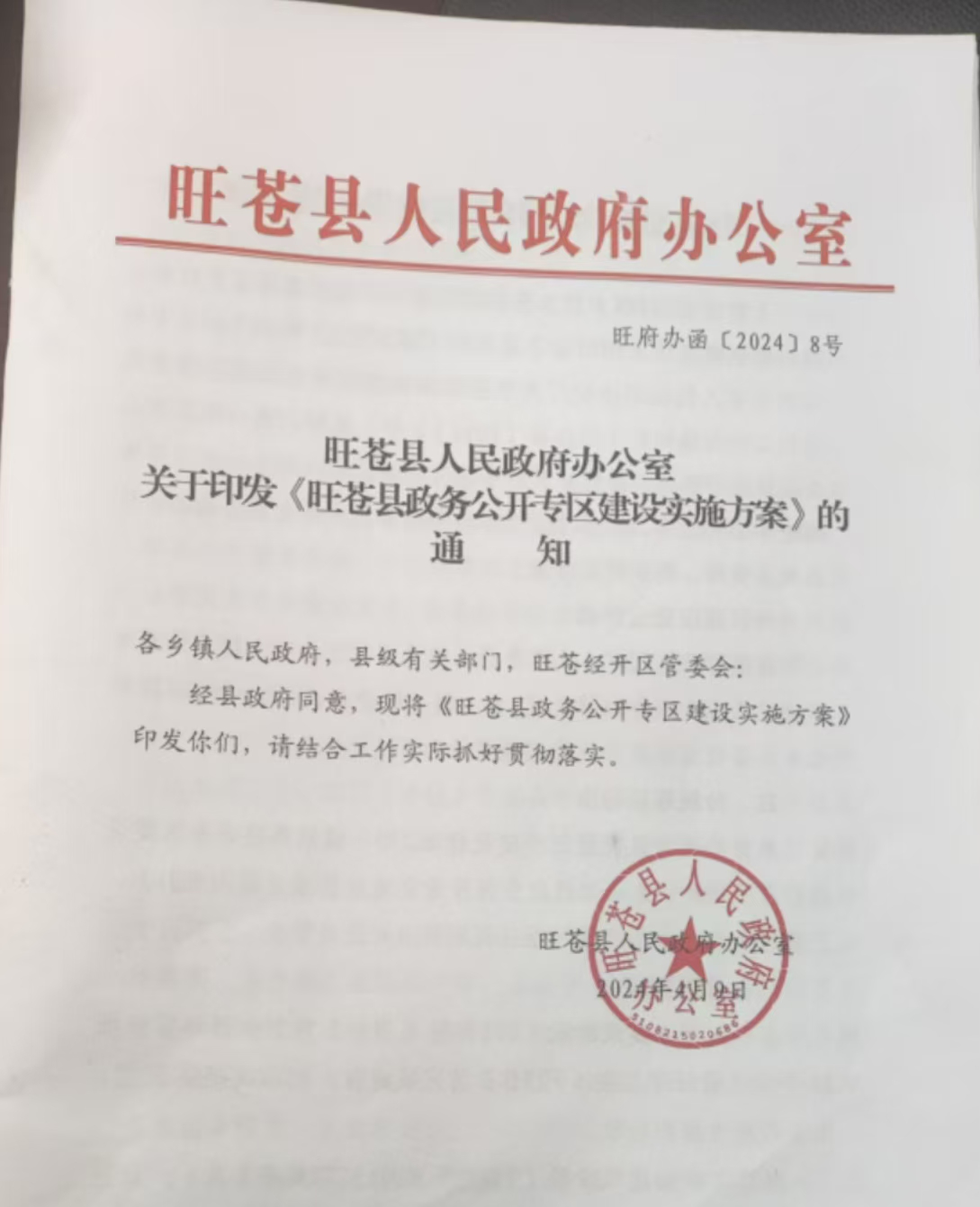 川公网安备 51082102000002号根据《中华人民共和国政府信息公开条例》和省、市有关政府信息公开工作的规定,现公布旺苍县2024年度政府信息公开情况。报告全文包括总体情况、主动公开政府信息情况、收到和处理政府信息公开申请情况、政府信息公开行政复议及行政诉讼情况、存在的主要问题及改进情况、其他需要报告的事项6个部分。报告中所列数据统计期限为2024年1月1日至12月31日。电子版在旺苍县人民政府门户网站(www.scgw.gov.cn)全文公开,如对本报告有疑问,请与旺苍县人民政府办公室政务公开股联系(地址:旺苍县东河镇新华街333号;邮编:628200;电话:0839—4203318)。